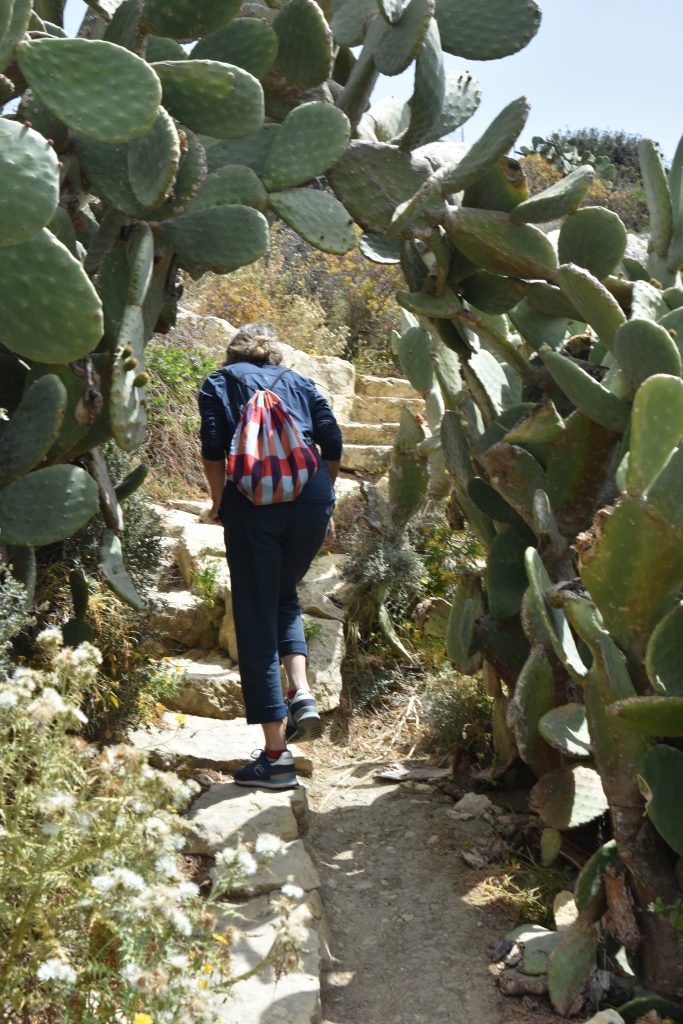 Der nächste Tag bescherte morgendliche Spaziergänge und dem ein kurzer Tripp weiter gen Westen Gozos in die Dwejra-Bucht (das ist einfach: sprich dweira) folgte. Diese Bucht ist spektakulär, da kreisrund, auf der Westseite durch einen großen Felsen geschützt, der nur zwei schmale Einfahrten frei lässt, und ansonsten von steil aufragenden, teils himmelhohen Felsklippen umfasst. Auf den ersten Blick trostlos. Doch fast jeder, der hier lag, hat sich auf diese besondere Situation eingestellt und war anschließend fasziniert.