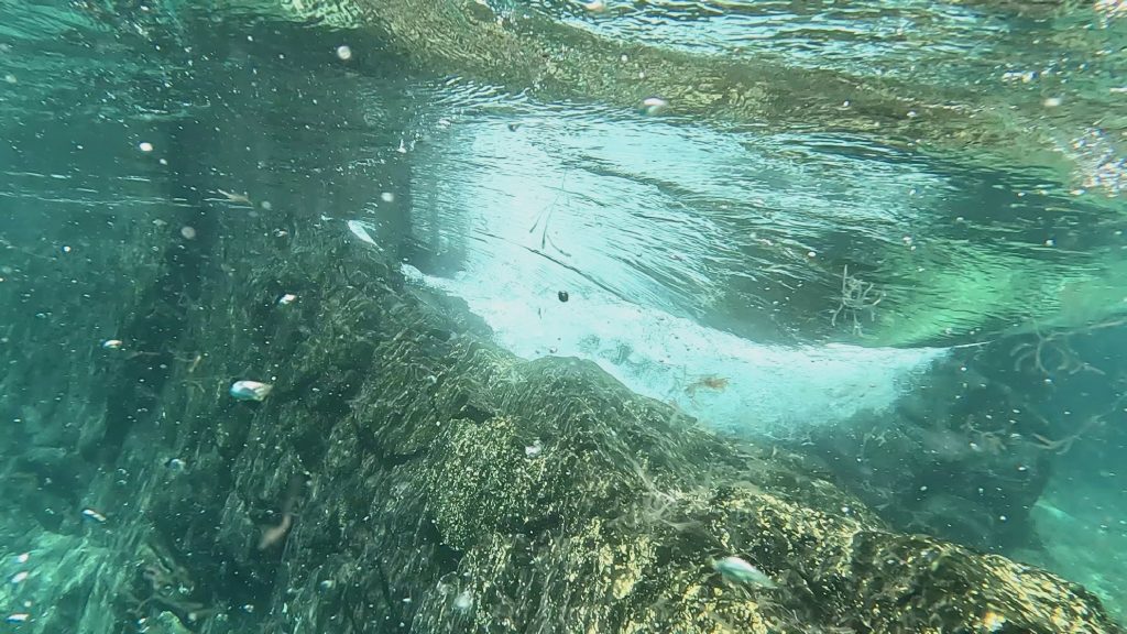 … und nähern uns seltsamen „Höhlungen“. Und man glaubt es kaum, hinter diesem markanten Einschnitt im Kliff geht es noch weiter …