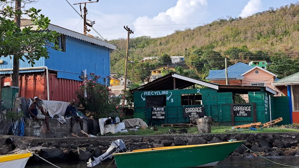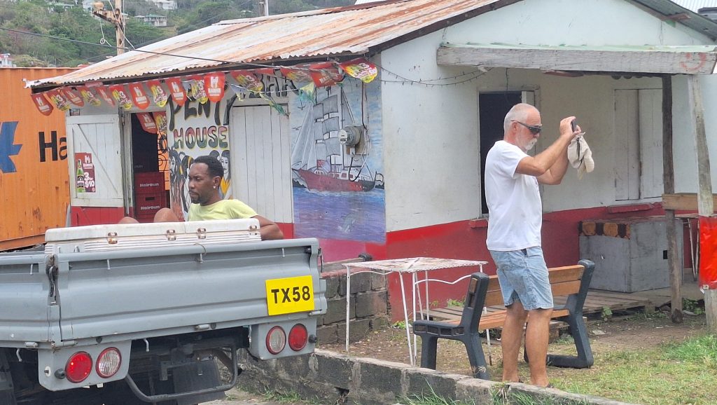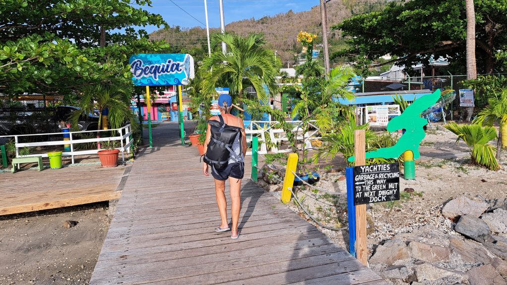 Europa mit seinen viel zu wenig wertgeschätzten Vorteilen liegt ziemlich hinter uns. Nicht jeder, aber gefühlt jeder zweite Wechsel einer Insel bedeutet, man betritt einen neuen Staat. Und das erfordert alles, was dazugehört. Für den Segler bedeutet das jedesmal Ein- und Ausklarieren. Auf Bequia befinden sich Zoll und Einwanderungsbehörde im selben Gebäude und wenn das Immigration Office geschlossen hat, erledigt der Zoll deren Arbeit einfach mit. Gesundheitsbehörde und Hafenkapitän müssen auf Bequia glücklicherweise nicht aufgesucht werden.Erste Erkundungsgänge längs der Ufer der Admiralty Bay. Wir finden nette Orte, …… die klitzekleine Marina (die gibt es wirklich) …… und weitere Stege, die dem Yachtie ein Anlanden ermöglichen.Nimmt man den falschen Anlandesteg ist das der erste Eindruck von Port Elizabeth. Dass es anscheinend einen Unterschied zwischen Garbage und Litter gibt, war uns noch nicht klar.Still halten – beim Fotografieren; still sitzen auf der Ladefläche. Straßenszene in Port Elizabeth.Die Bebauung ist durchaus malerisch und lässt noch die alten Zeiten erkennen. Der größte Teil der Menschen, die hier leben, sind Nachfahren der aus den südlich der Sahara liegenden Gebieten stammenden Sklaven, die für den Zuckerrohranbau hierher verfrachtet wurden. Die Arawak, die eigentliche Urbevölkerung, starb wie auf anderen Inseln auch wahrscheinlich schon im 16. Jh. aufgrund eingeschleppter Krankheiten fast aus. Nachkommen der Arawak leben heute nur noch in einigen Festlandsgegenden.Zeugnisse des Wandels. Die Bebauung, auch in Port Elizabeth, ist recht locker. Obwohl Bequia nicht gerade groß ist, man hat Platz.Die Menschen lieben durchaus auch ein farbenfrohes Dasein, vor allem, wenn auf eine Kneipe aufmerksam gemacht werden soll.