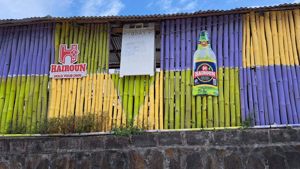 Klar besuchen wir auch einmal einen Supermarkt. Ein Überblick über das Angebot ist immer gut. Genauso klar und erwartbar ist, dass das Angebot beschränkt ist. Aber das, was es gibt, gibt es reichlich. Wobei der Zucker nicht rafiniert ist, sondern raffiniert. 😉Klar, dass wir auch in einer der Kneipen einkehren, schließlich muss ja auch der heimische Gerstensaft verkostet werden. Zumal bei der herrschenden Hitze.Farbenfrohe Kneipentheke. Der Stolz auf die nationale Identität ist unübersehbar.