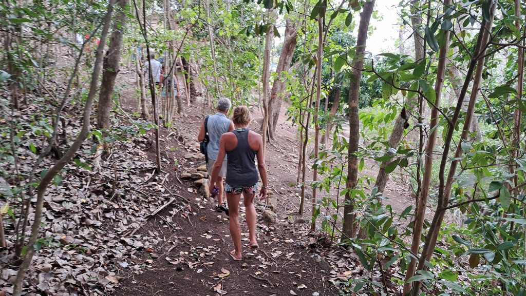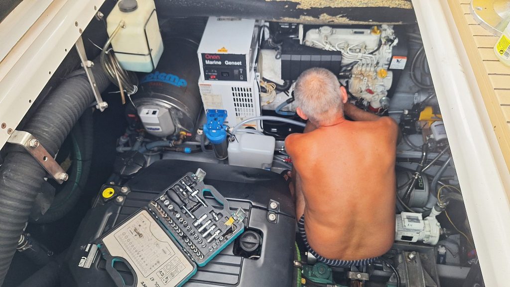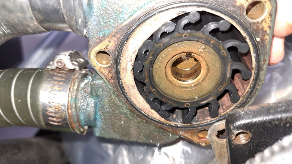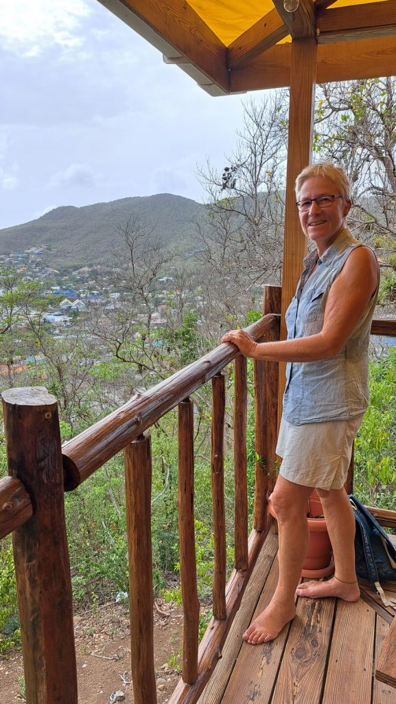 Die Yachtie-Community, die vor Bequia ankert, ist recht aktiv. Auf einem Nachbarboot gibt es ein Life-Konzert mit anschwellendem 😊 Publikum. Wenig später fiel das Konzert allerdings dem plötzlich losbrechendem Regen zum Opfer. ☹Und damit falsche Eindrücke von glücklich-gemütlichem Fahrtensegeln mit rauschenden Feiern sich gar nicht erst festsetzen, hier das Foto eines frisch geprüften Impellers. Die Seewasserpumpe des Generators. Die Lage der Impellerflügel links unten ist sonderbar. Doch die dummen Dinger wollten sich partout nicht anders ausrichten lassen bzw. sind wieder in diese seltsame Position zurückgekehrt.Nachdem die Impellerpumpe wieder montiert ist, suchen wir an anderer Stelle den Grund für die zu hohe Kühlwassertemperatur und finden schließlich eine Handvoll kleiner Muscheln, die den Durchfluss im Wärmetauscher beeinträchtigen. So schön warm hat´s denen da drin wohl gut gefallen. Martin bei der Arbeit in der Unterwelt.Doch Bootsarbeiten sind glücklicherweise mal die Ausnahme. Aufgrund der bescheidenen Entfernungen auf der Insel streifen wir stets zu Fuß umher. Gerne auch gemeinsam mit anderen Seglern. Hier auf der Suche nach einer abgelegenen Bar oben auf den Hügeln über dem Ort.Das einfache Wohnhaus des Betreibers und unten, kaum zu erkennen, die Kneipe. Aber nicht täuschen lassen: Vor Betreten der Kneipe sind die Schuhe auszuziehen. Alles ist picobello sauber. Und alles, was hier oben errichtet ist, haben der Betreiber und seine Frau, vielleicht auch mal Freunde, auf dem Rücken hier hoch geschleppt.