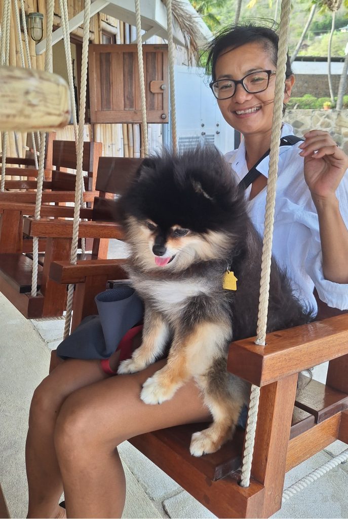 Überraschend stoßen wir im einzigen Strandrestaurant auf Cindy und Robert von der Juno mit dem kleinen Krawallmacher namens Teddy.