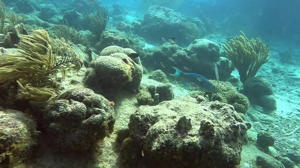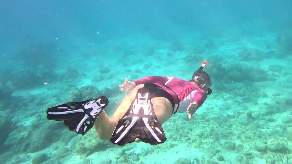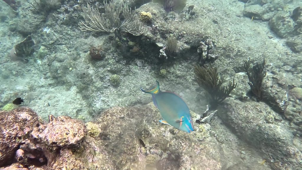 Wenn man in den Spaanse Waters vor Anker liegt, ist der Tug Boat Beach nicht weit entfernt. Wir hatten von ihm gehört, gefunden haben Anke und ich ihn allerdings eher zufällig vor einigen Wochen. Und dann waren wir gemeinsam mit Helena und Tim zum Schnorcheln dorthin gefahren. Blöd nur, dass Martin an alles gedacht hatte, nur nicht daran, die Kontaktlinsen einzupacken, ohne die er sowohl über als auch unter Wasser blind wie ein Fisch ist. Wobei eine solche Phrase mit Sicherheit eine Verunglimpfung der Fischwelt ist. Die andern drei vergnügten sich also im Wasser und Martin an einem schlappen Bier an Land. Nun ganz in der Nähe ankernd, gab es kein Vertun: Wir mussten nochmal am Tug Boat Beach schnorcheln. Damit genug der überleitenden Worte, wir lassen Bilder sprechen.
