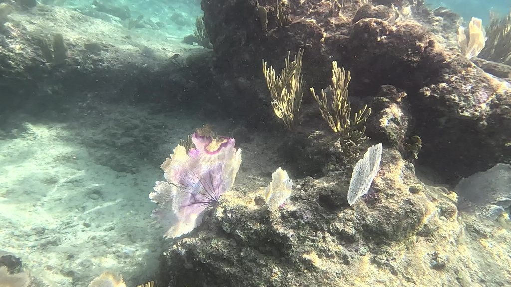 Bei den richtigen Lichtverhältnissen beginnen die Fächerkorallen in den verschiedensten Farben zu schillern. Leider war der Moment nach wenigen Sekunden vorbei.