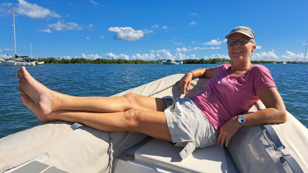 Es braucht nicht immer ein Automobil. Auch mit dem Dinghi lässt es sich vorankommen. Um ehrlich zu sein, auf dem Ankerplatz sind wir auf das Dinghi angewiesen. Die Distanz zwischen unserem Ankerplatz und dem Dinghidock ist doch recht groß. Und da man wegen der Manatis nur langsam fahren darf, dauert es auch stets. Nicht unbedingt ein Nachteil wie man sieht.