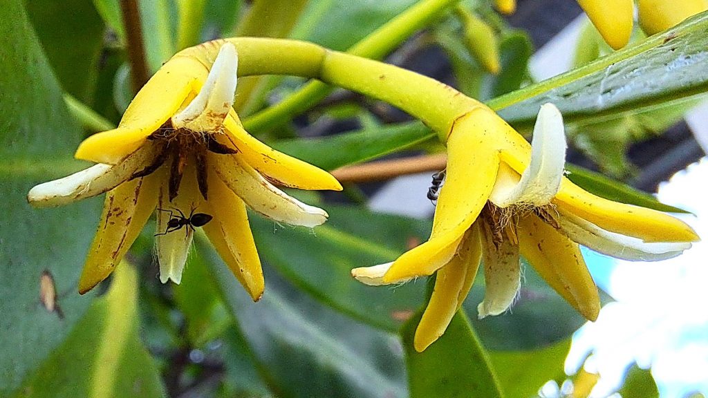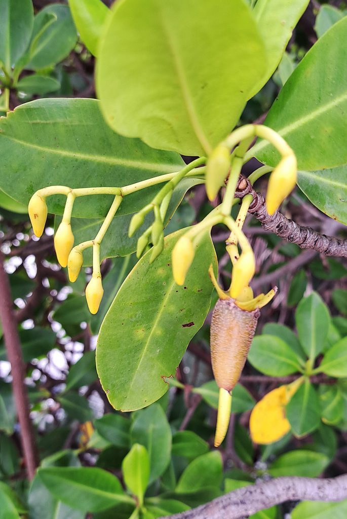 Salinas als Ort hat eigentlich nichts zu bieten, wenn man mal von den Versorgungsmöglichkeiten absieht. Dafür bietet uns die Natur ringsum ein paar besondere Momente. So sehen wir zum ersten Mal blühende Mangroven. Wir sind zwar nicht hundertprozentig sicher, doch wir gehen davon aus, dass wir hier vor allem die Rote Mangrove (Rhizophora mangle) antreffen.