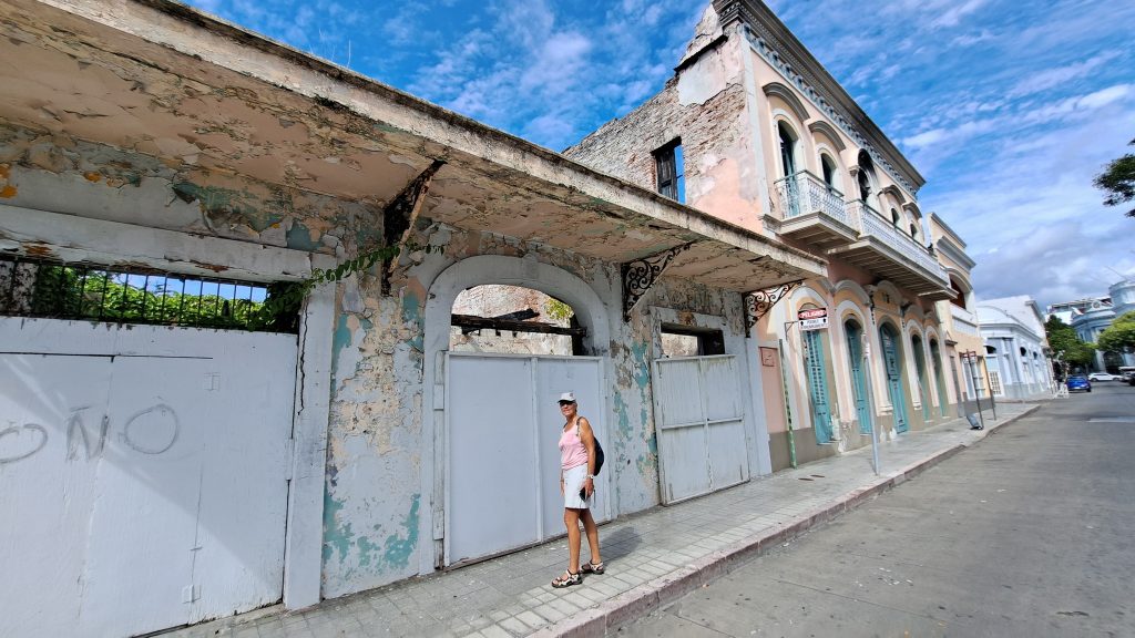 … teils ganz schön runter. Man kann die einstige Pracht immerhin ahnen. Außerhalb des Zentrums finden sich viele kleine, typisch puertoricanische Häuschen, die wir leider nicht mehr ein zweites Mal aufgesucht haben. Was wir sehr bedauern. „Immer diese Hetze!“ Aber wir wollten natürlich das kostenlose Auto zeitlich nicht über Gebühr in Anspruch nehmen.
