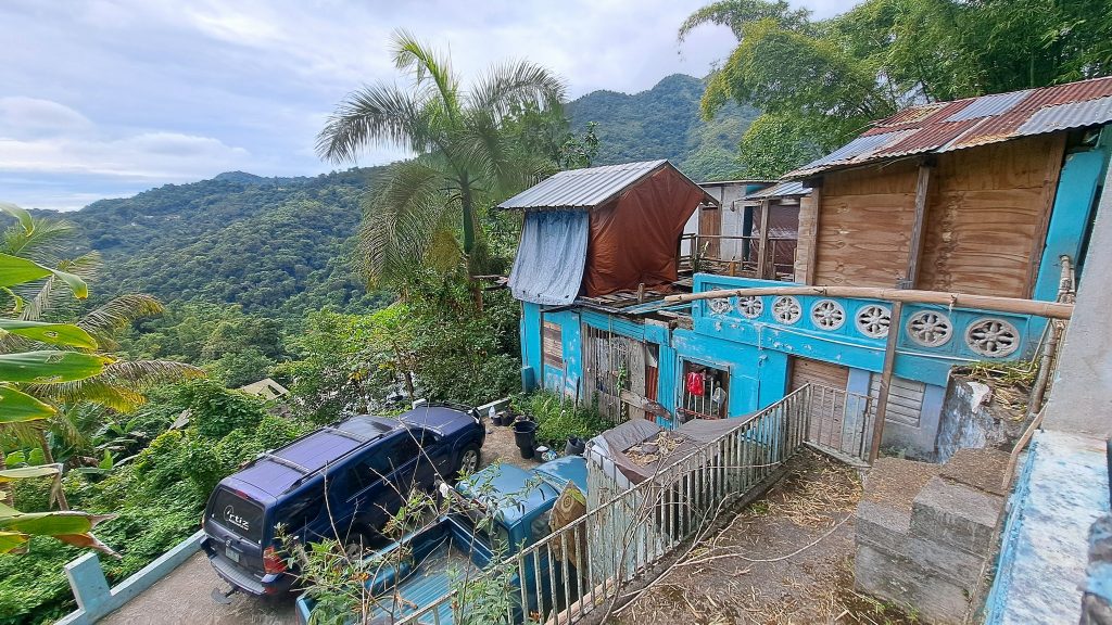Auf dem Weg in die Berge. Wir wollen die Hacienda Buena Vista besuchen. Anwesen am Straßenrand.