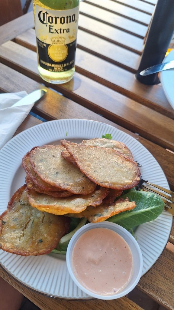 Anke erfeut sich stattdessen an Bacallitos, mit fein gehacktem Bacallao (Stockfisch) gefüllten Teigtaschen. Ebenfalls sensationell gut. Unsere Empfehlung: das Restaurante Tablas, gleich gegenüber der Kathedrale.