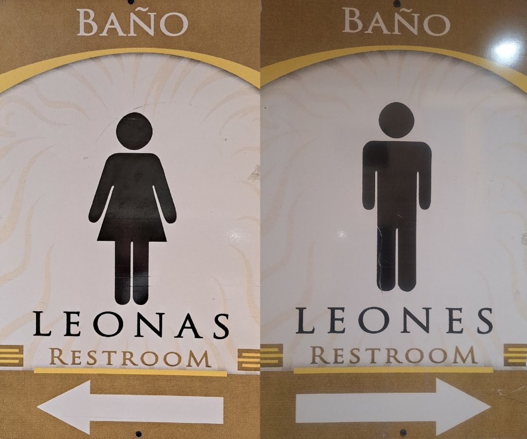 Selbst die öffentlichen Toiletten sind den Löwen gewidmet. Da es bei diesen biologisch nur zwei Geschlechter gibt, Leones und Leonas, hat man sich das Zwischengesterne und Doppelgepunkte geschickt erspart. 😉