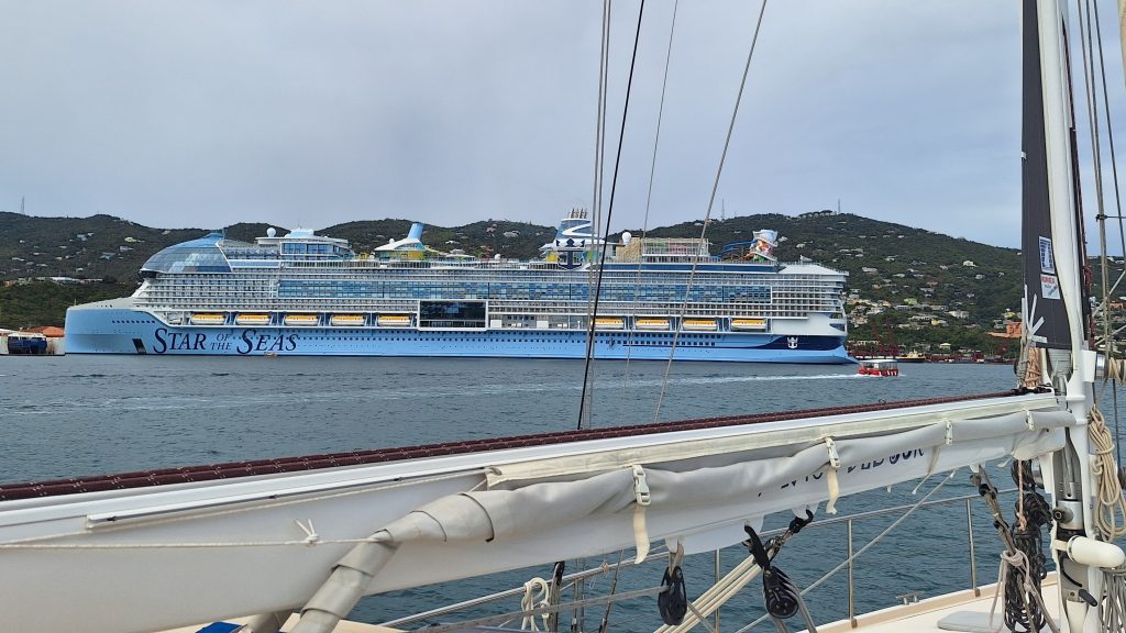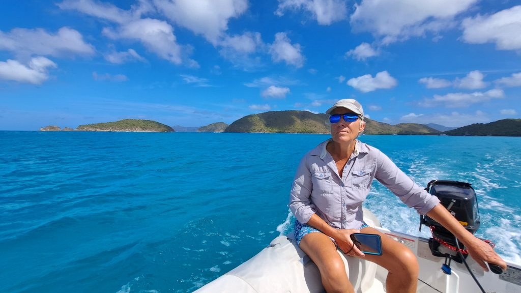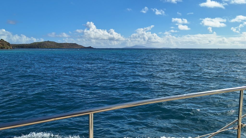 Irgendwann war es gut in der Bucht bei Charlotte Amalie, zumal diese angeblich beste Bucht der Karibik ziemlich schaukelig war. Wir haben kurzerhand umgelegt in die Francis Bay auf St. John. Das bedeutet, wir haben mit dem Dinghi unterhalb des Bugs einer Megayacht, die den gesamten Tanksteg der Marina in St. Thomas blockierte, die Kanister für unseren Außenborder befüllt und sind am nächsten Tag aufgebrochen. Nach ein paar Meilen gab es Unmut seitens Anke, da ich ziemlich knapp am anderthalb Meter unter Wasser liegenden Packet Rock vorbeischrammelte. Das wirklich Spektakuläre an der knappe 14 Seemeilen langen Etappe ist die Passage der Enge zwischen Current Rock und Great Saint James Island. Wir beobachten andere Sportboote und Motorboote und kommen schließlich zu dem Schluss, dass Tide und die Strömung mit uns sind und wir diese Abkürzung nutzen können, ohne die gefürchteten Bedingungen anzutreffen, die es geraten lassen, auf eine Passage zu verzichten. Das Wasser wird dann auch etwas kabbelig, unsere Fahrt über Grund steigt um knapp 2 Knoten an, doch alles in allem haben wir tatsächlich eine gute und ruhige Phase erwischt.