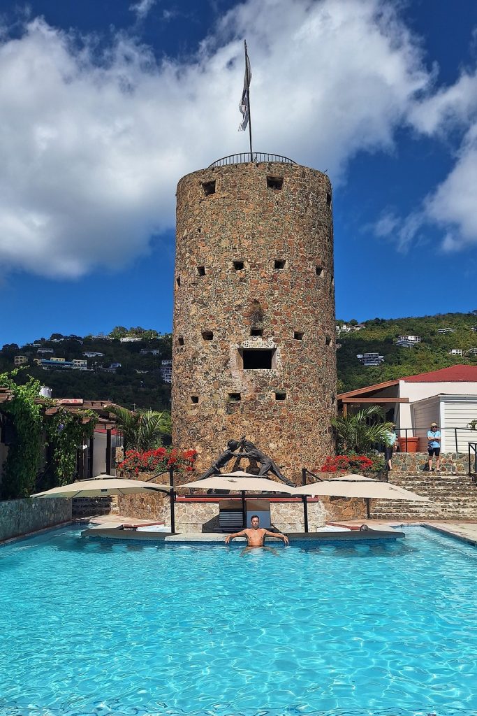 Den Turm aus dem Jahre 1679, auch als Prinz-Frederik-Turm bekannt, oberhalb von Charlotte Amalie wollen wir jetzt nicht vorenthalten. Hübsche Idee: Der Pool davor. Von ihm aus hat man eine phantastische Aussicht. Und man muss nicht einmal Eintritt zahlen. Badeklamotten mitbringen, reinspringen und sich wohlfühlen. Wenn wir das gewusst hätten!