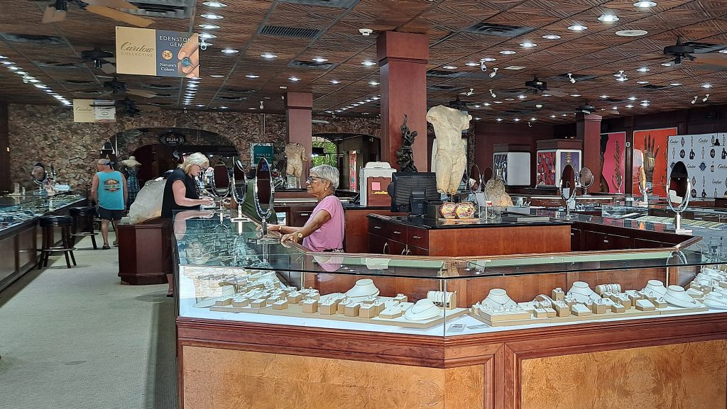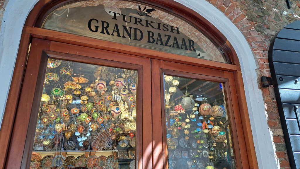 Doch alles spielt sich entspannt ab. Es gibt so gut wie keinen Versuch, etwas mit Macht an den Mann zu bringen. Im Gegenteil, die Verkäufer sind zurückhaltend, helfen aber gern, auch mit Auskünften, und bieten sogar mal ein Glas Wasser oder Cola an. Auch gibt es neben all dem, was die Auslagen im Eingang und Schaufenster prägt, weiter hinten in den tiefen Räumen durchaus auch andere Dinge. So kommt Anke schließlich ganz unverhofft zu Ersatz für ihre schon im Zerfall befindliche Sonnenbrille. Und da es günstige Optionen sind, kauft sie gleich zwei.