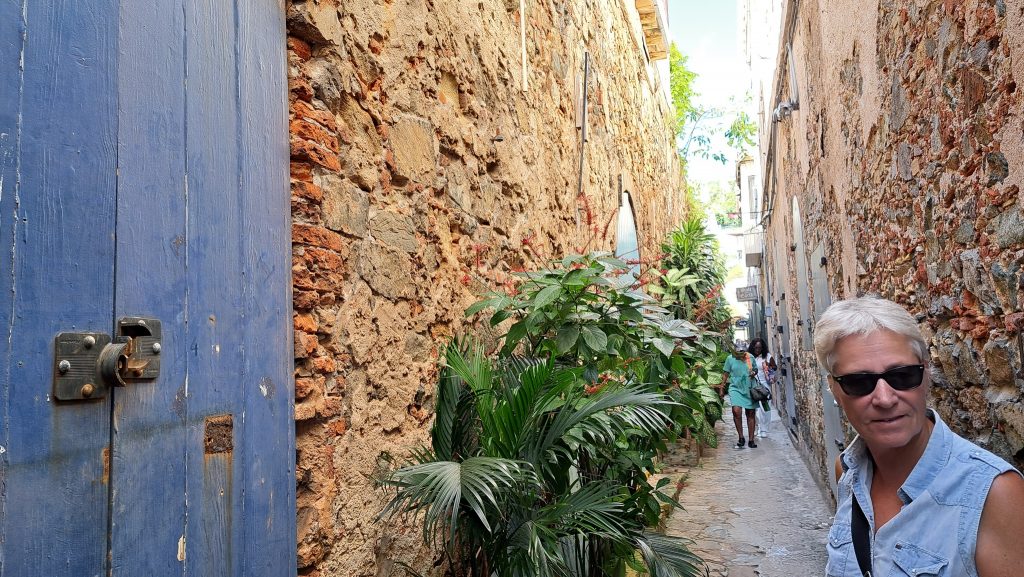 Kommt einem ja irgendwie bekannt vor, diese Gestalt, oder? Wichtiger ist eigentlich der große Knabe, der in die andere Richtung schaut. Er verkörpert den Piraten Blackbeard, der den Wachturm oberhalb des Stadtteils Charlotte Amalie angeblich nutzte, was aber nicht belegt ist. Seine Statue stand aber so im Gegenlicht, dass da nichts abzulichten war. Wie auch immer, Piratenromantik ist gut für den Tourismus. (Anm. Martin: Ich bin gespannt, ob man den somalischen Piraten in 100 Jahren auch solche Skulpturen widmen wird.)