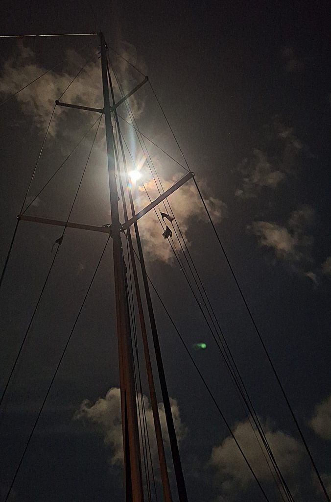 Mit Vollmond und der Vorfreude auf den kommenden Morgen gehen wir in die Kojen.