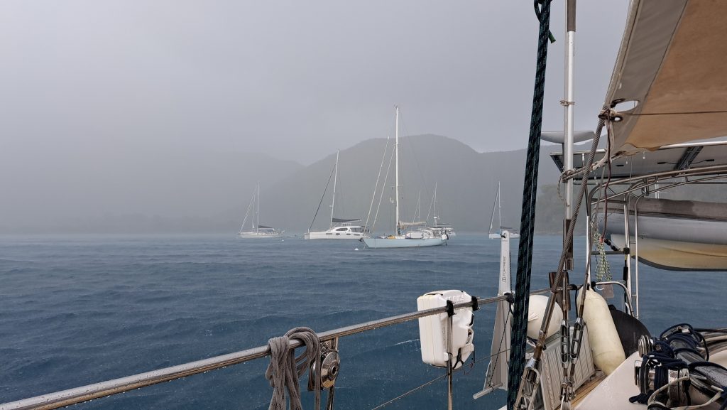 Nach der unvermeidlichen Bürokratie gehts weiter in die doppelte Lameshur Bay. Wir können in der Little und in der Great Lameshur Bay zwar keine der Standardbojen erhalten – alle belegt – doch es gibt noch zwei Bojen für große Yachten. Irgendwie ist unser Boot dann ganz schnell gewachsen und alles war gut, zumal die Liegegebühren eh identisch waren. Leider ist das Wetter nicht gerade das, was man sich unter karibisch vorstellt. (So falsch können Vorstellungen sein.)