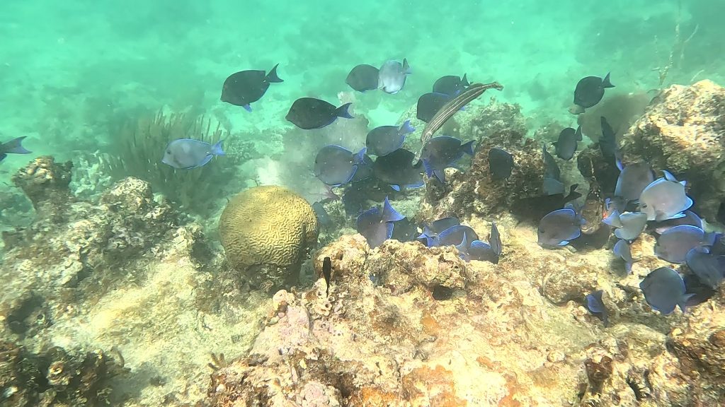 In der Francis Bay nehmen wir eine Boje. Die kostet 26 USD am Tag und man zahlt digital oder mit einem von der Nationalparkverwaltung vorbereitetem Umschlag, in den man die Dollars und ein kleines Formular steckt, und den man dann in einen kleinen Zahlbriefkasten auf einem kleinen schwimmenden Ponton stopft. Man muss mit einem bereithängendem Stopfer stopfen, sonst bekommt man den Umschlag nicht rein. Hintergrund: Niemand soll in der Lage sein, das Gestopfte wieder herauszupulen.