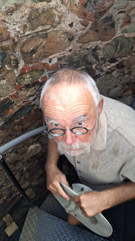 So sieht ein Mann aus, dem soeben mitgeteilt wurde, er sei zu fett, die Wendeltreppe auf den Prinz-Frederik-Turm weiter hinauf zu steigen. Er passe an den anderen Touristen nicht vorbei.