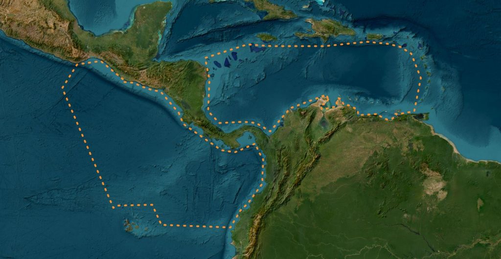 Skippern von Schiffen, die in internationalen Gewässern, d. h. mehr als 12 Meilen vor der Küste, im östlichen Pazifik südlich oder östlich von Huatulco (Mexiko) und nördlich von Ecuador sowie in der Karibik südlich der Kaimaninseln, Jamaika, Puerto Rico, den Amerikanischen Jungferninseln und den Britischen Jungferninseln und nördlich von Südamerika unterwegs sind, wird empfohlen, Folgendes zu tun: